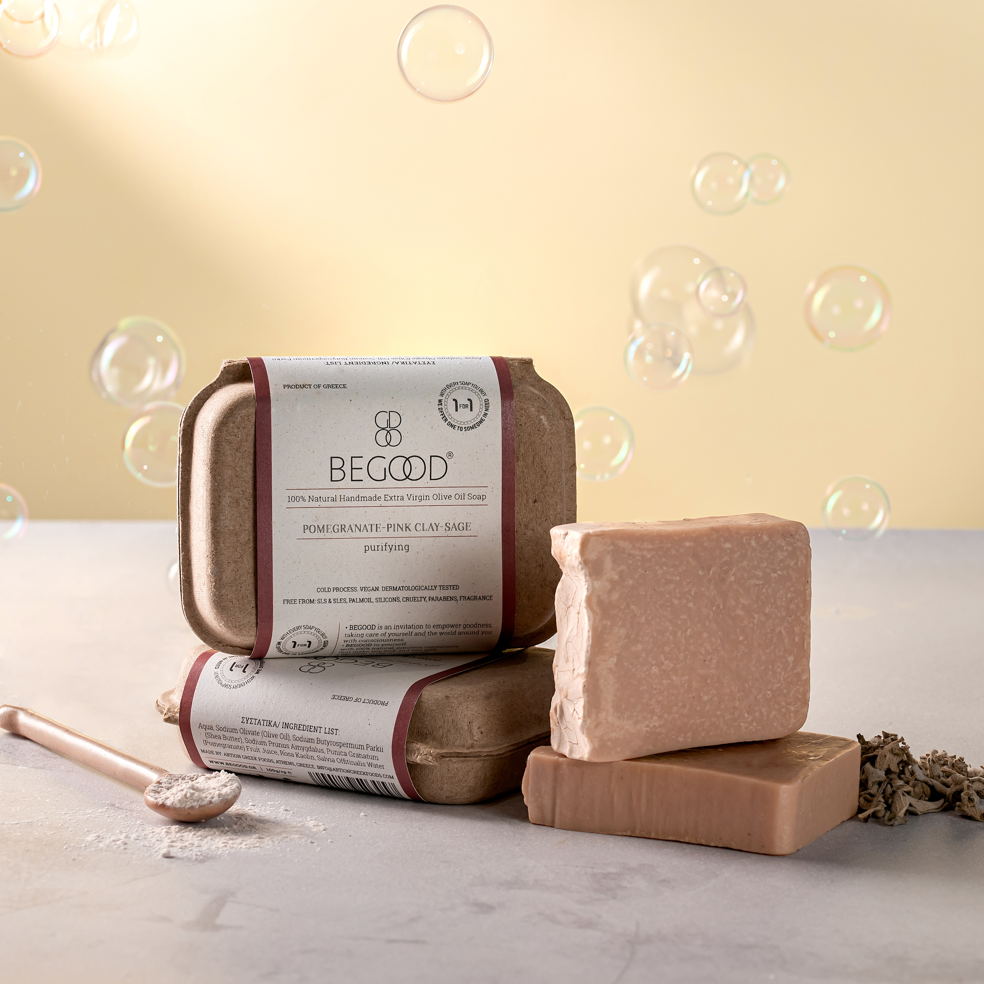 BEGOOD 100% Natural Handmade Extra Virgin Olive Oil Soap -Pomegranate, Pink Clay, Sage (purifying) / 100g